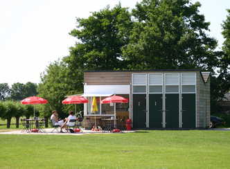 De kiosk is ideaal gelegen op een recreatieterrein en langs een fiets- en wandelpad. Het is perfect geschikt voor de verkoop van etenswaren zoals broodjes, ijs, snoep, koffie, thee, frisdrank en andere lekkernijen.